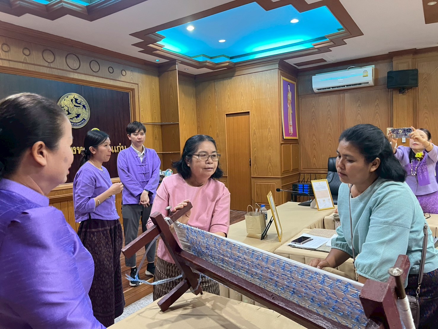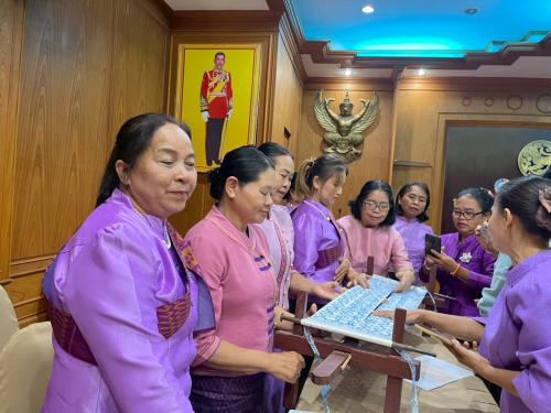 ในการนี้ นางพิสมัย บุบผามาลา ประธานกลุ่มทอผ้าบ้านชัยเจริญ เป็นวิทยากรถ่ายทอดความรู้ด้านการมัดหมี่ลายผ้าพระราชทาน ให้แก่คณะกรรมการพัฒนาสตรีตำบลและกลุ่มทอผ้าในอำเภอ จำนวน 42 คน โดยเน้นการเรียนรู้ตั้งแต่การออกแบบลาย การมัดหมี่ การย้อมสีธรรมชาติ และเทคนิคการทอผ้าให้ได้มาตรฐาน