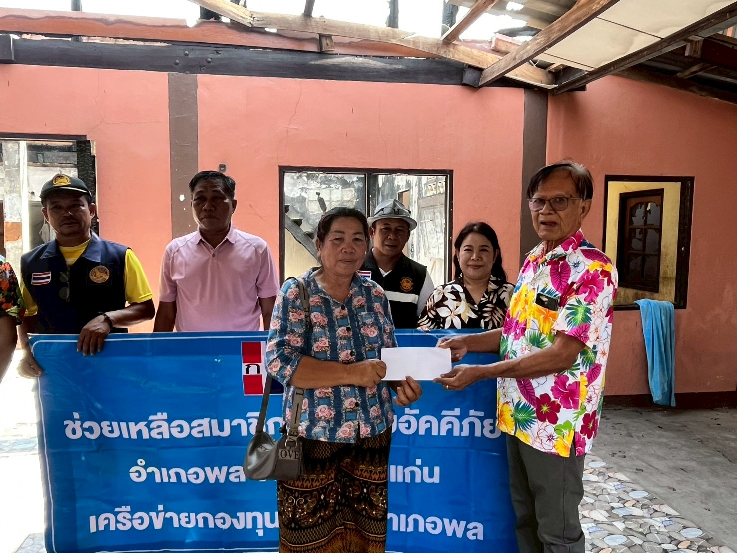 นายปรวัชร วรรณจงคำ พัฒนาการอำเภอพล มอบหมายให้ นางสาววิลาลักษณ์ สุนทะโล นักวิชาการพัฒนาชุมชนชำนาญการ พร้อมด้วย นางสาวสุกาญดา นิระภัย นักวิชาการพัฒนาชุมชนชำนาญการ ร่วมกับเครือข่ายกองทุนหมู่บ้านอำ้ภอพล (กทบ.) ลงพื้นที่มอบเงินช่วยเหลือครัวเรือนผู้ประสบอัคคีภัย ณ บ้านหนองสิม หมู่ที่ 11 ตำบลโจดหนองแก อำเภอพล จังหวัดขอนแก่น เพื่อบรรเทาความเดือดร้อนและเป็นขวัญกำลังใจแก่ผู้ประสบภัย